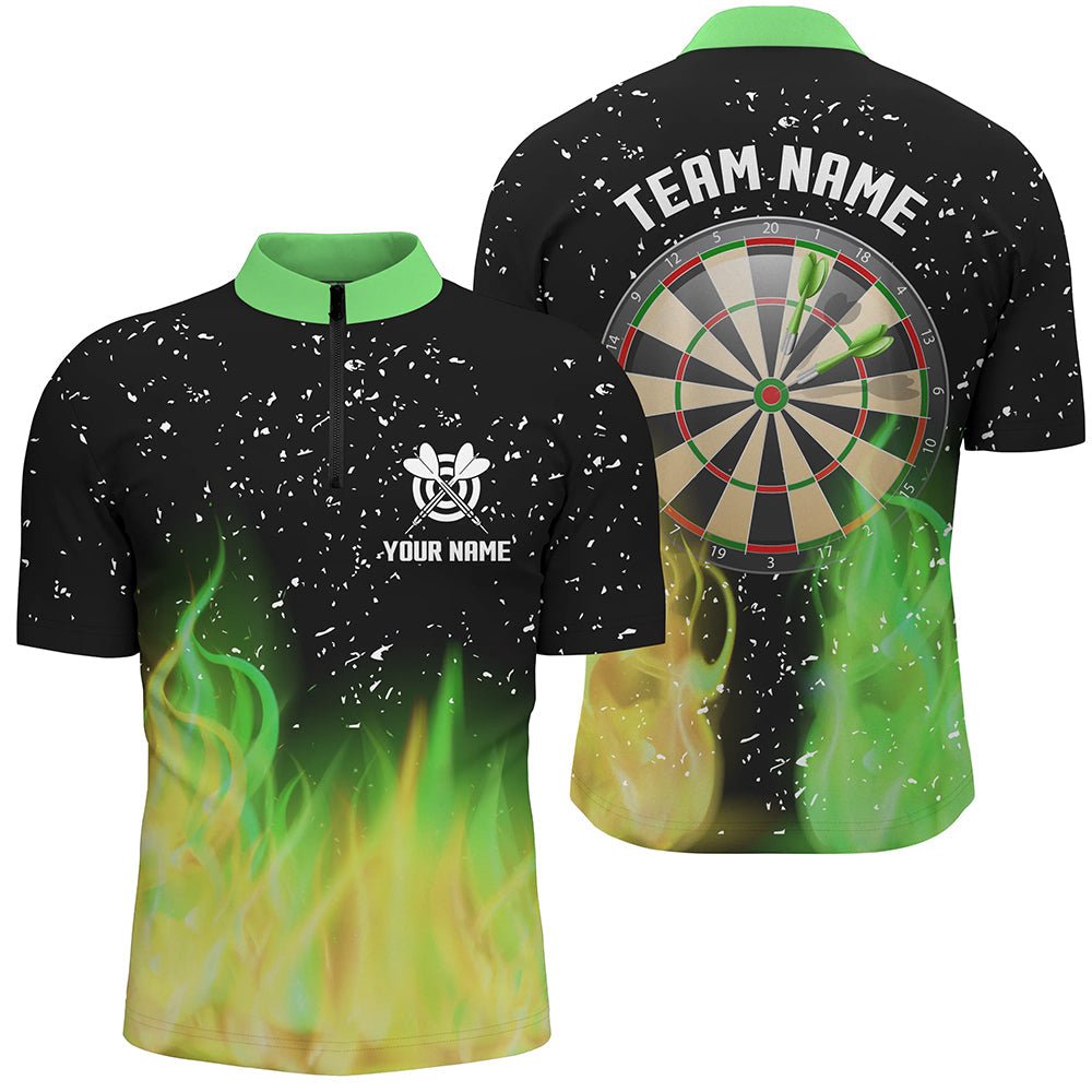 Heren Kwart-Ritssluiting Shirt met Groene en Gele Vuur Darts