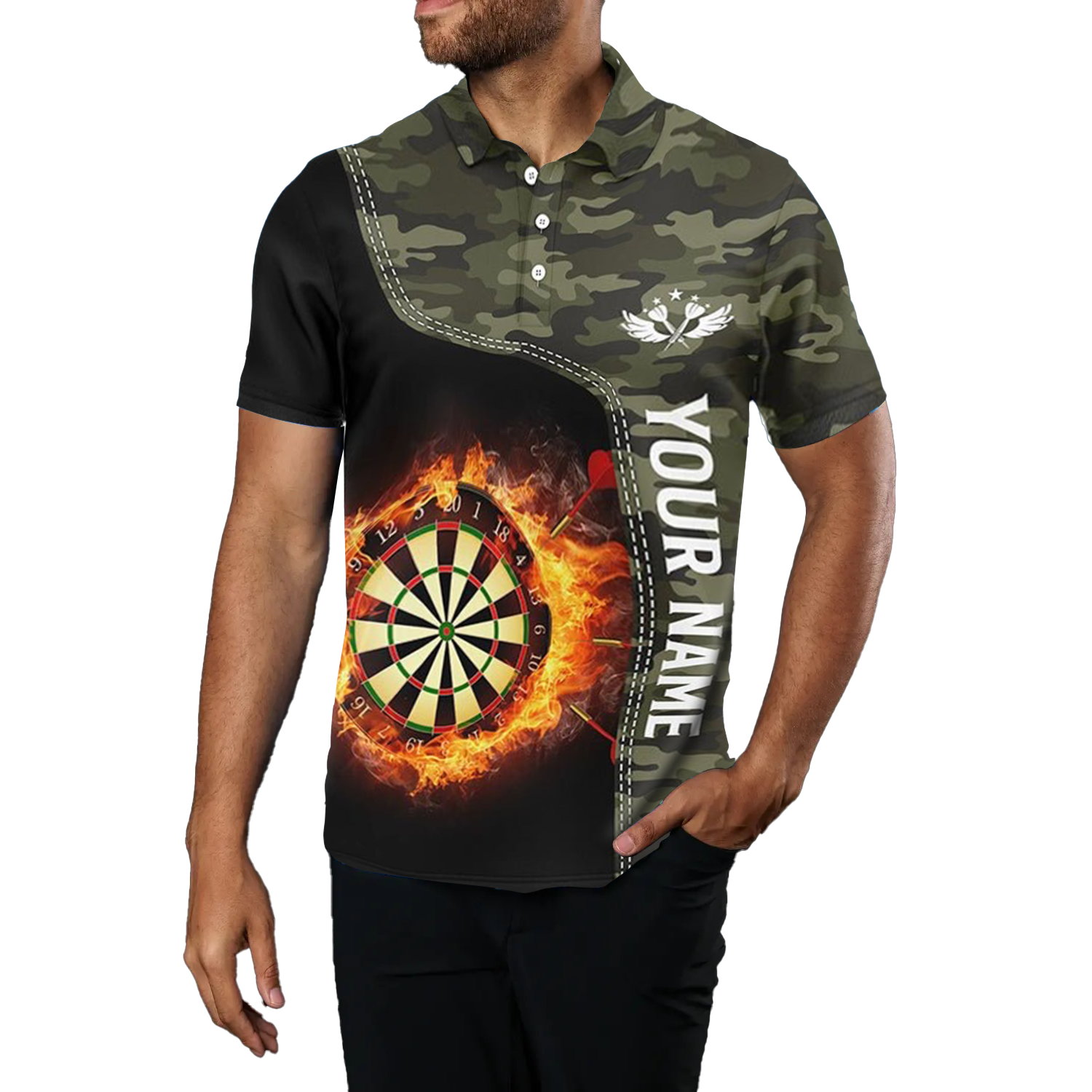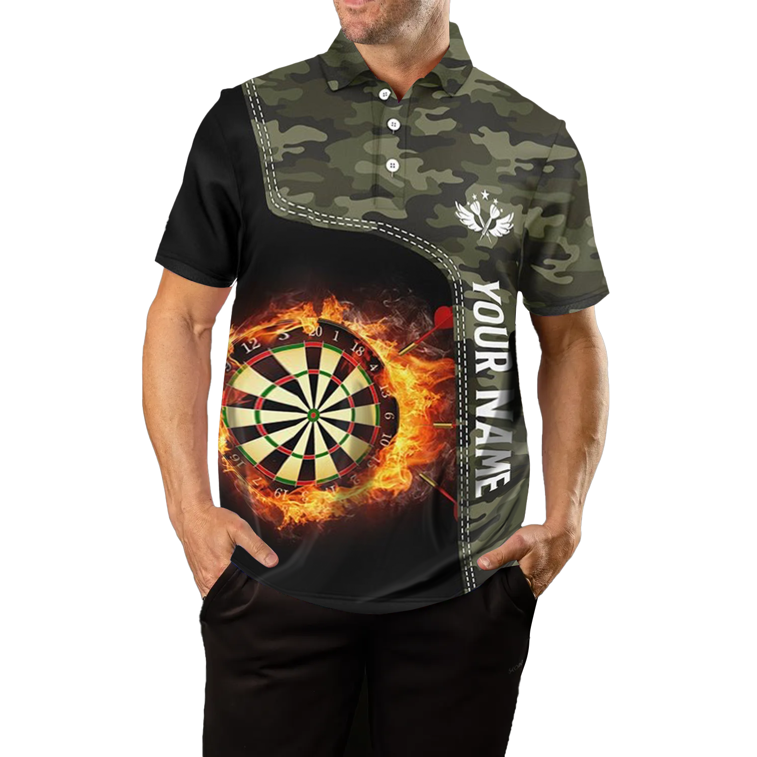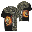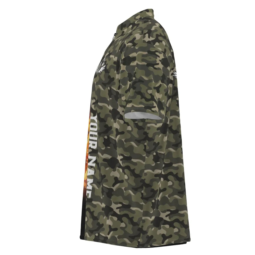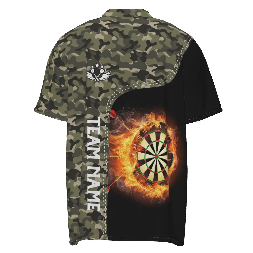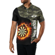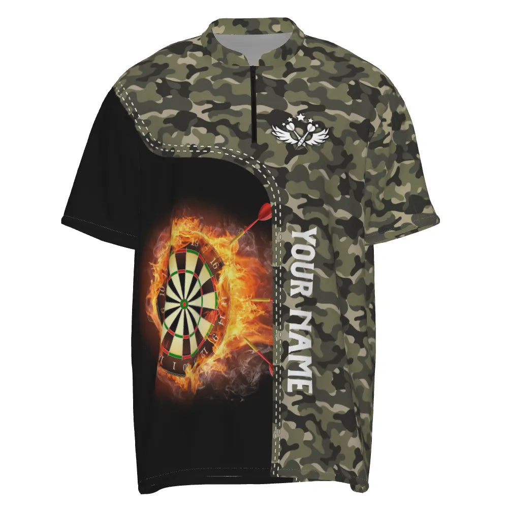 Heren Groen Camo Vlammen Dartbord 1/4 Zip Shirt Y479