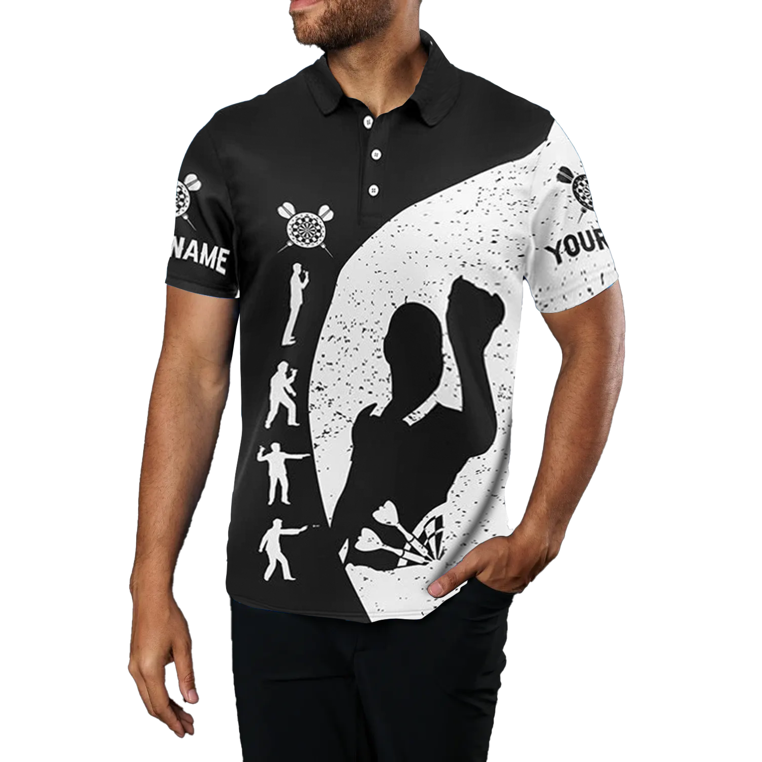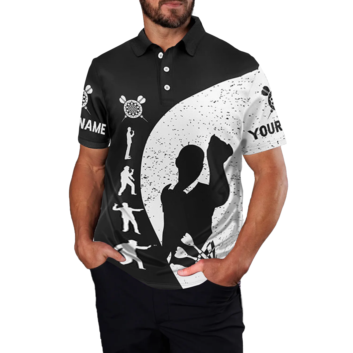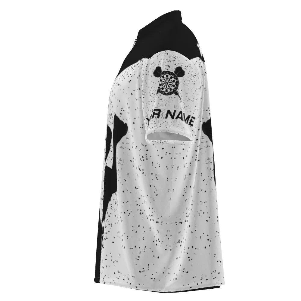 Heren Grunge Darts Shirt met Halve Rits in Zwart en Wit T528