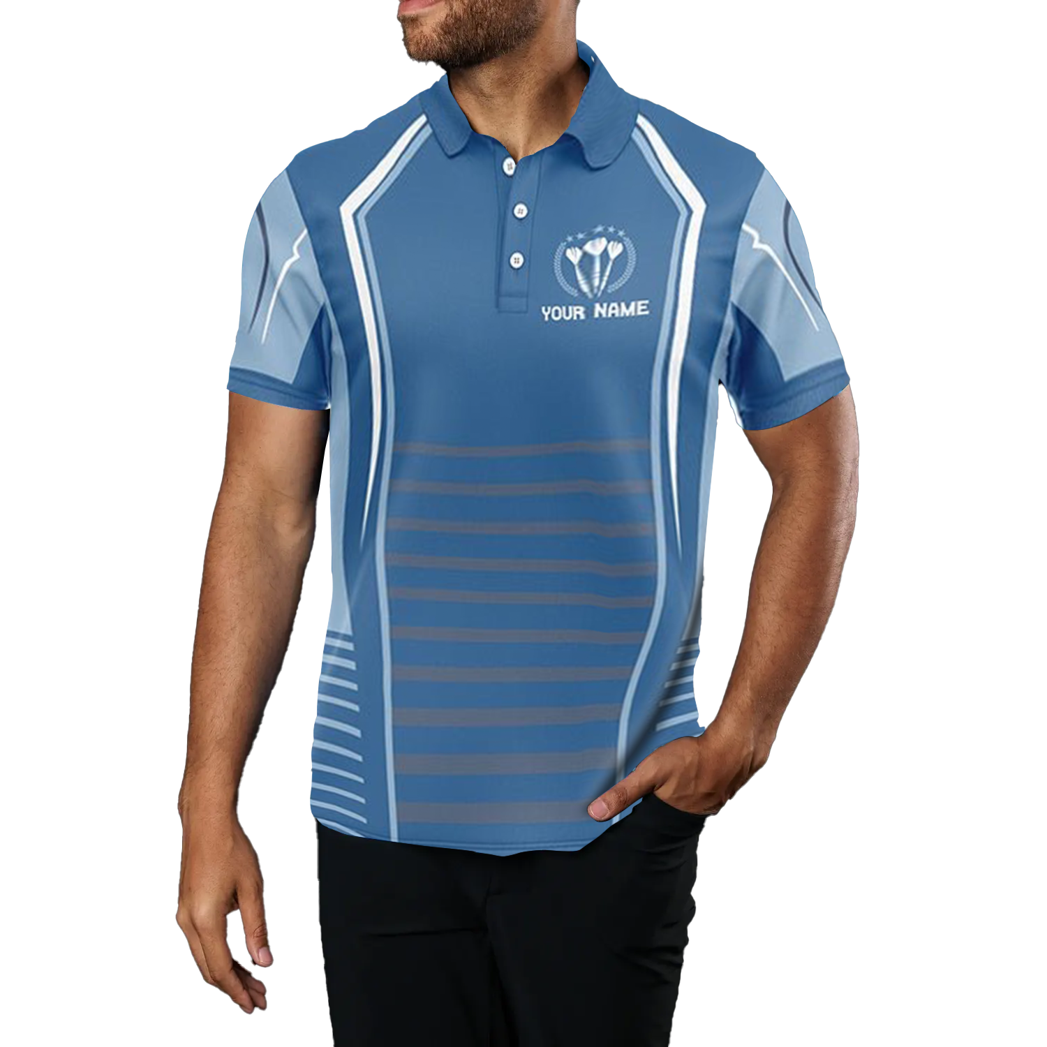 Heren Poloshirt met Rits in Blauw met Dartontwerp K739