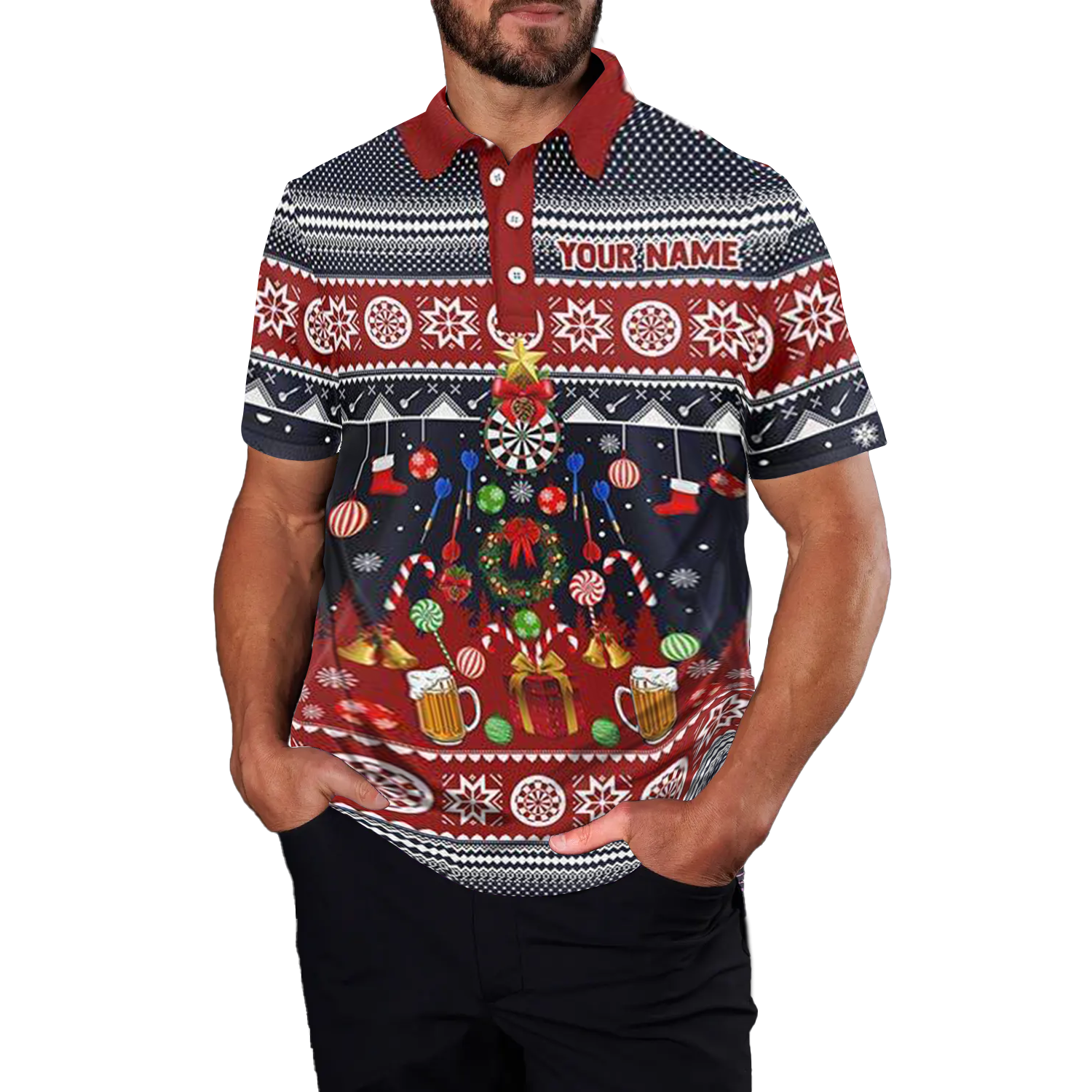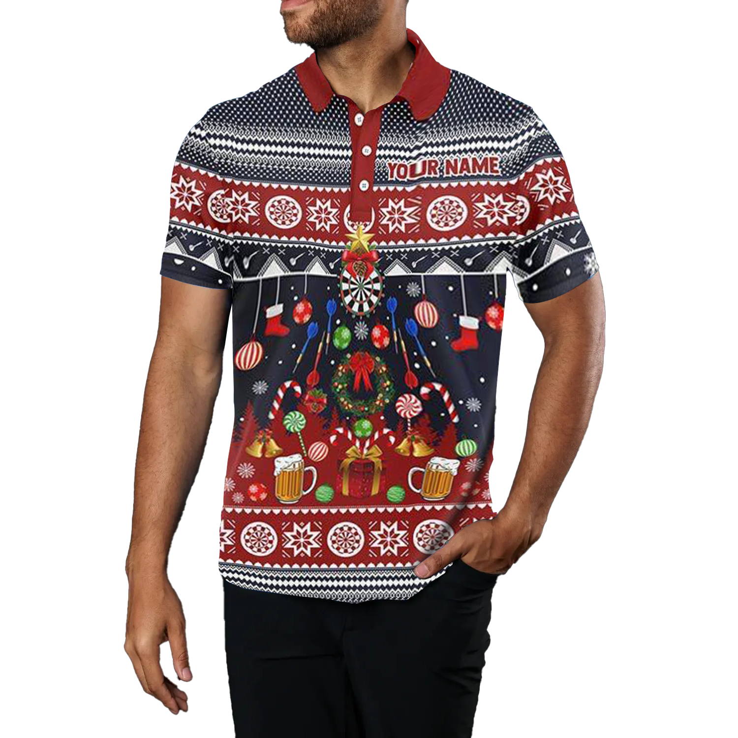 Heren Kerst Darts Poloshirt met Rits V118