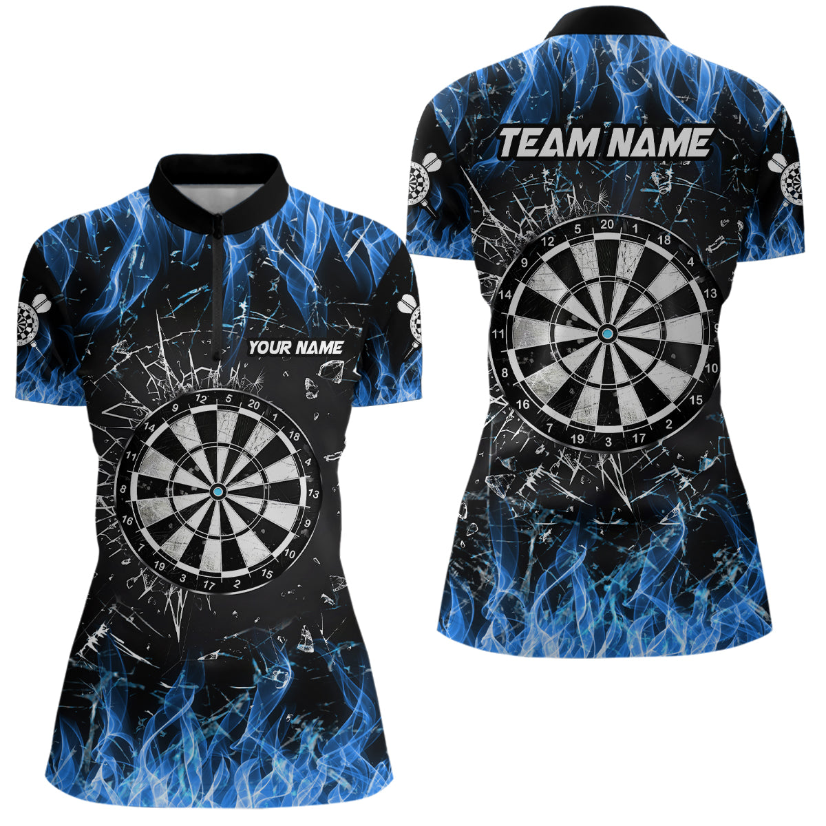 Op maat gemaakte Dames Dartshirts met Blauwe Vuurglas - Team V1193