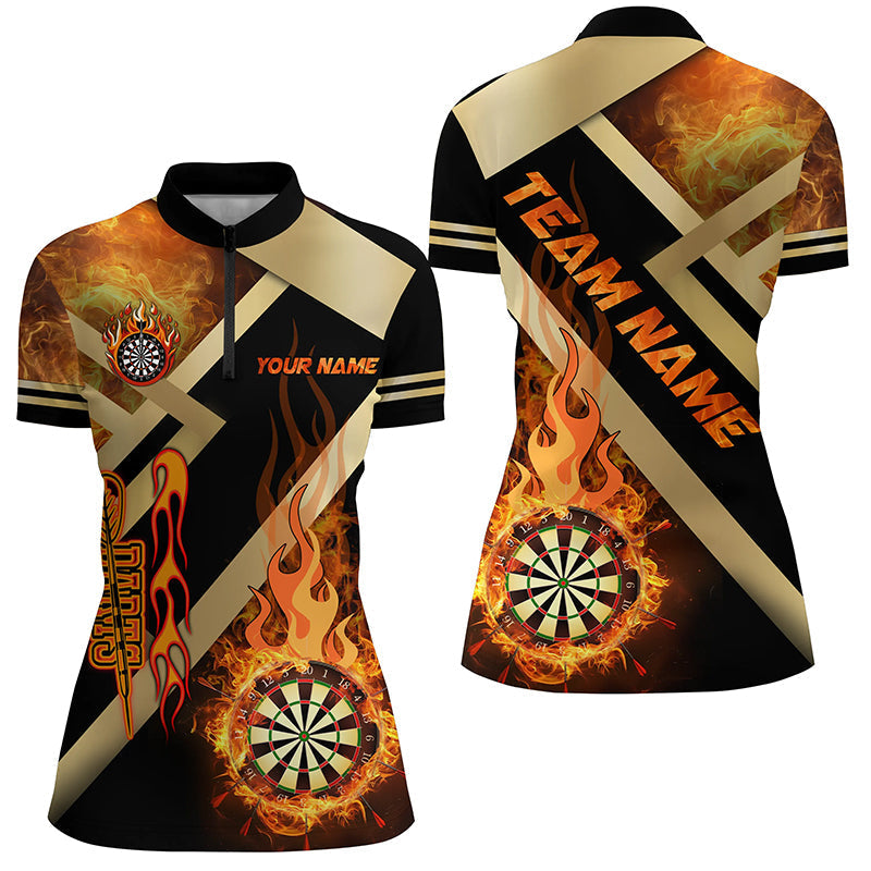 Persoonlijke Zwarte & Gouden Dartbord Vlam Darts T-shirts voor Vrouwen T2048
