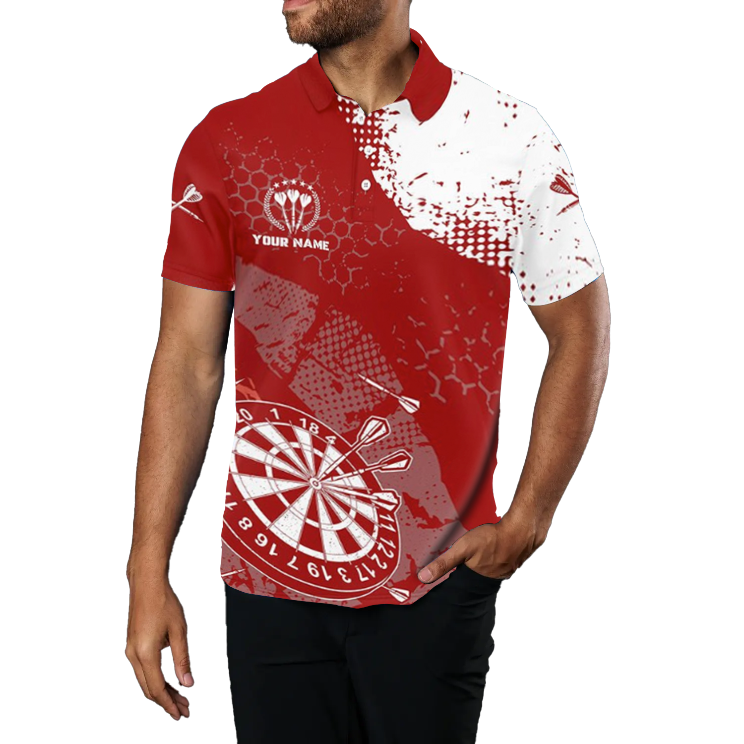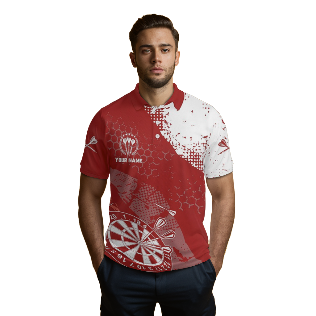 Heren Retro Rood-Witte Dart 1/4 Zip Shirt LDT0704 B987