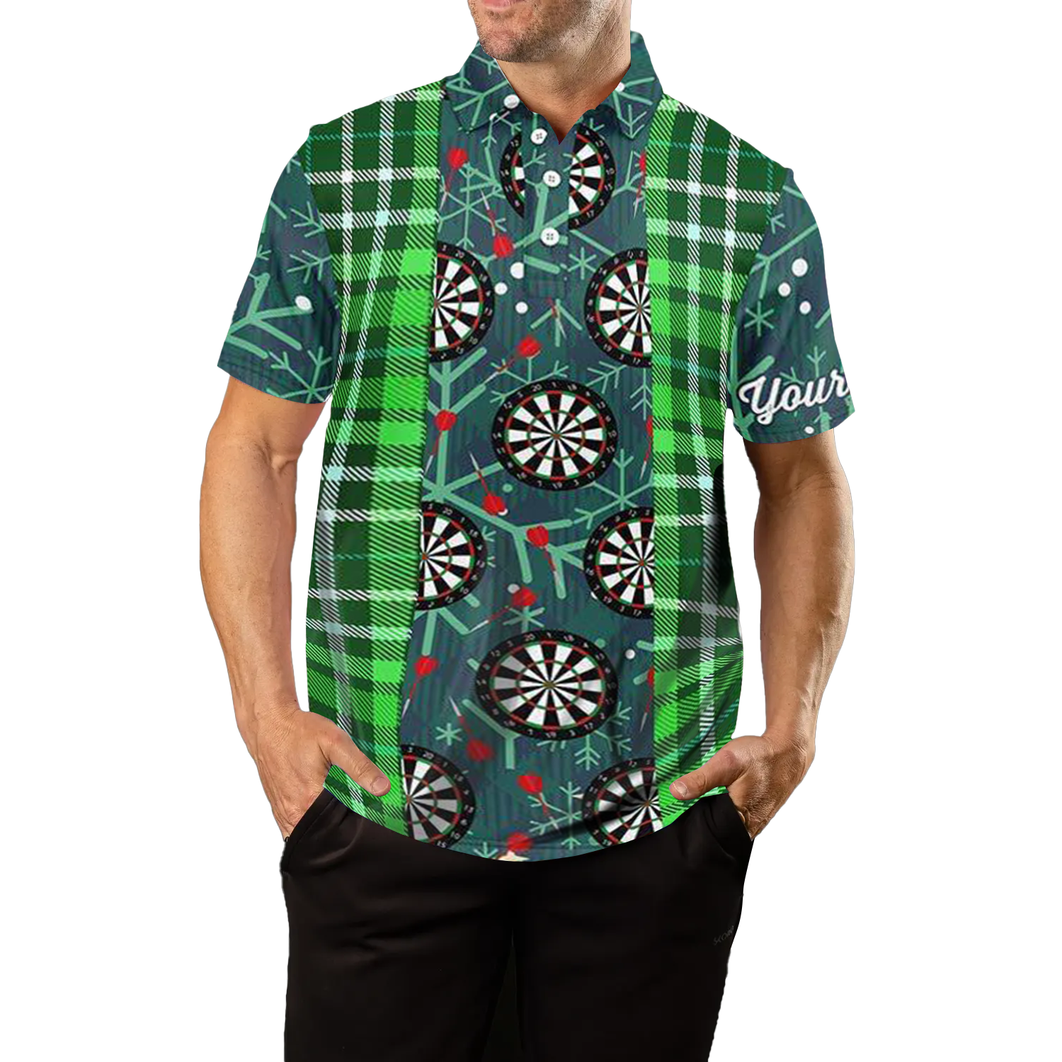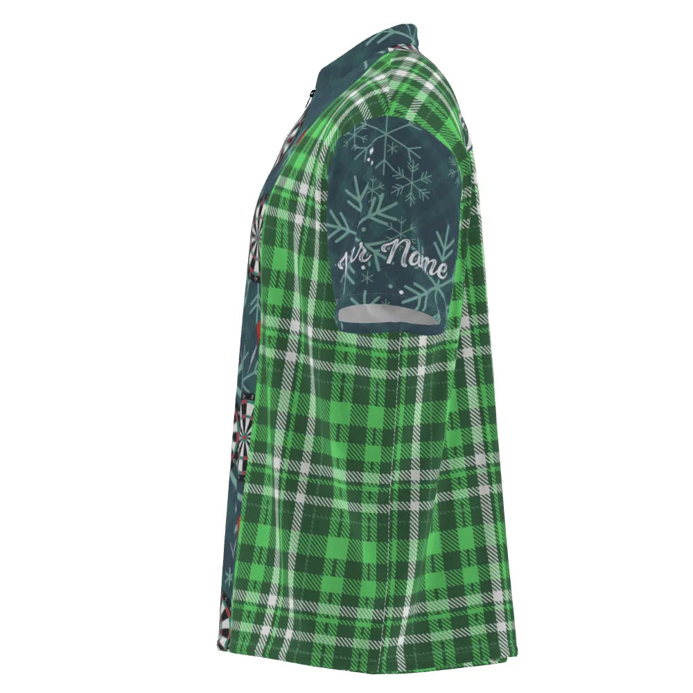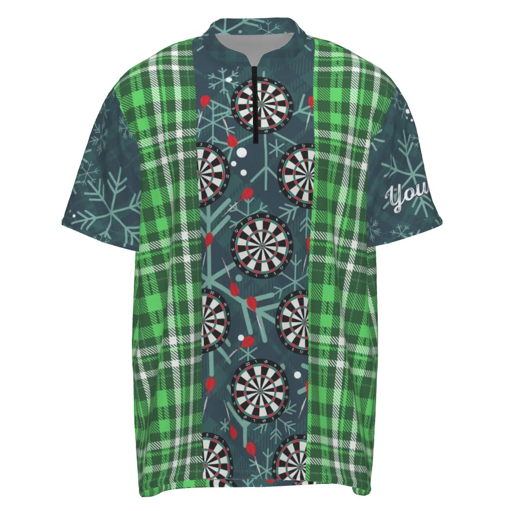 Heren Kerst Darts Flanellen Ruit Groen 1/4 Zip Trui V292